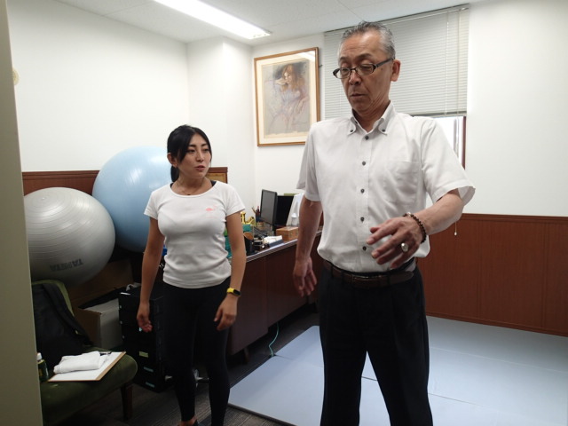 出てきたお腹を引っ込めましょう! 顧問トレーナーの大下コーチの指導の下、 寝っ転がらなくてもできる腹筋トレーニング中です。 お腹の筋肉を呼び戻し引き締めます。 立ってできますので、こっそりトレーニングできますね。
